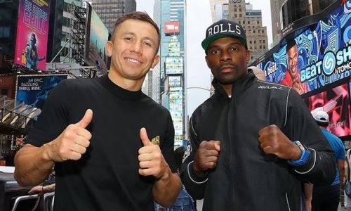 Казахстанский и канадский спортсмены устроили импровизированную дуэль взглядов на Таймс Сквер. Отметим, что в прошлом аналогичным образом Головкин встречался с другими нью-йоркскими соперниками — Кертисом Стивенсом и Дэниэлом Джейкобсом.