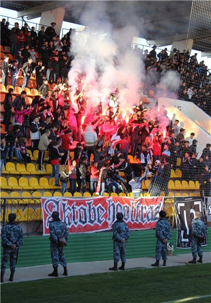 Дружим мы только с «Легионом». Вражда с костанайцами и алматинцами. С Атырау — непонятные отношения. — Кроме ФК «Актобе», ещё кого-нибудь поддерживаете? Может быть, коллективы или спортсменов из других видов спорта? — В ту пору, когда существовал МФК «Актюбрентген», болели за него — как на «домашках», так и выезды старались пробивать. В период межсезонья большого футбола это было самое то. Но вот уже несколько лет из-за проблем с финансированием команда играет во 2 российской лиге, там это делать намного дешевле. Вот и приходится актюбинскому болельщику скучать в перерыве между футбольными сезонами.