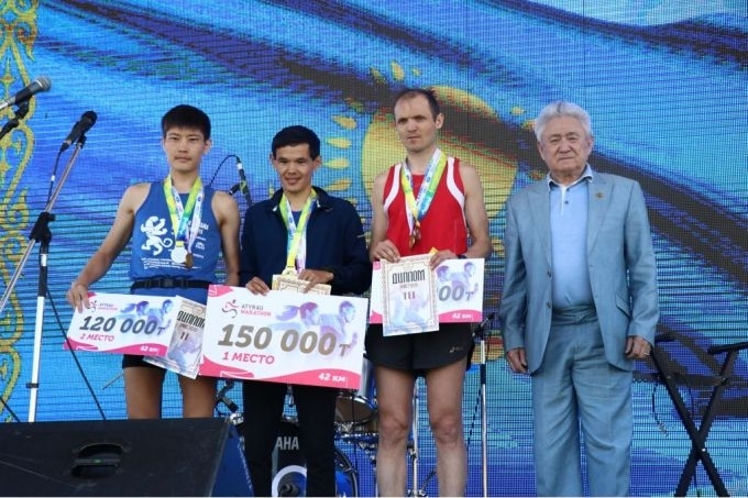 Абсолютный чемпион марафона Базарбай Дауталиев получил денежный приз в размере 150 тысяч тенге, телевизор и специальный приз от областной федерации по национальным видам спорта Атырауской области — скакуна.
