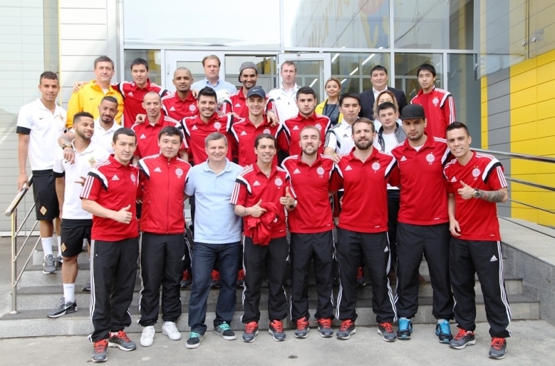 В ходе импровизированной пресс-конференции, капитаны команд обменялись пожеланиями, после чего для наших друзей была проведена небольшая экскурсия по Академии. Тем временем, футболисты алматинского клуба принялись фотографироваться с Кубком УЕФА.
