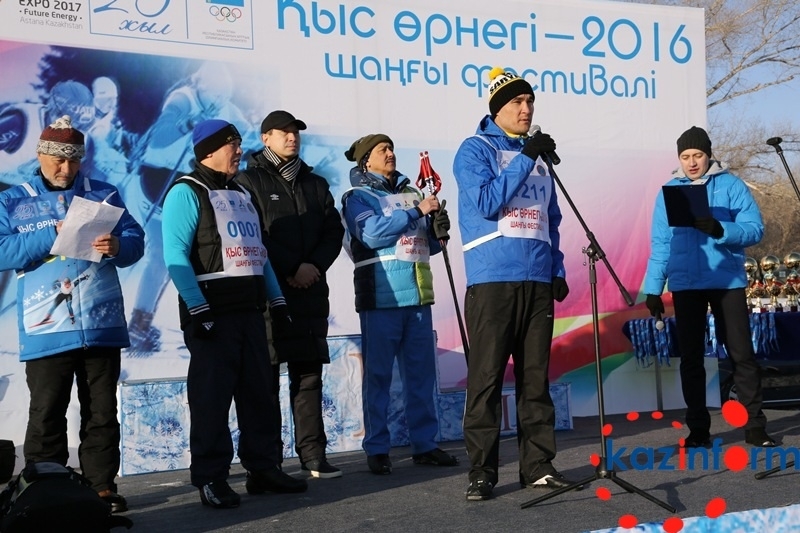 Градоначальник дал старт забегам, пробежав 1,6 км приблизительно за 10 минут. Вместе с ним лыжную дистанцию преодолели его заместитель Ермек Аманшаев, Олимпийский чемпион по боксу Серик Сапиев, генерал-лейтенант Абай Тасбулатов и исполнительный директор НОК РК Серик Каскабасов.