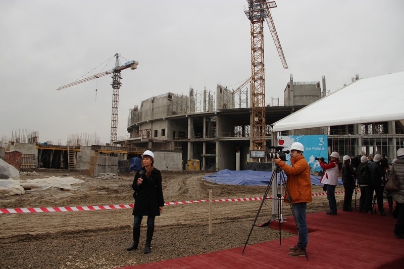 Началась наша поездка с посещения одного из стратегических объектов — Ледового Дворца на 12 тысяч мест, где будут проходить соревнования по фигурному катанию и хоккею.