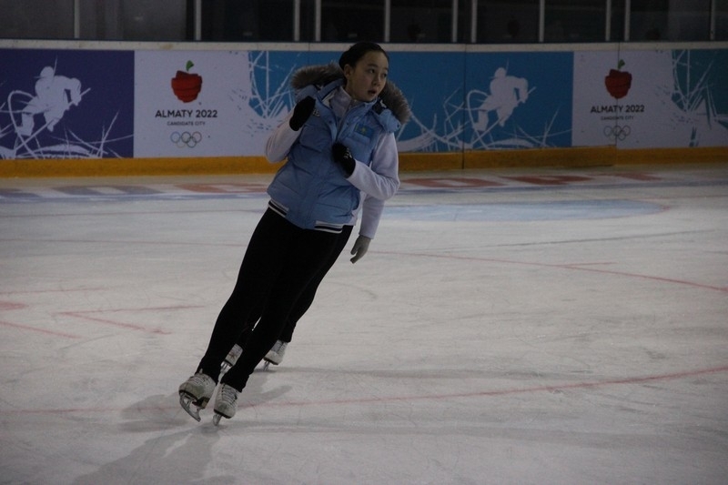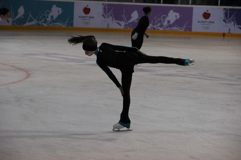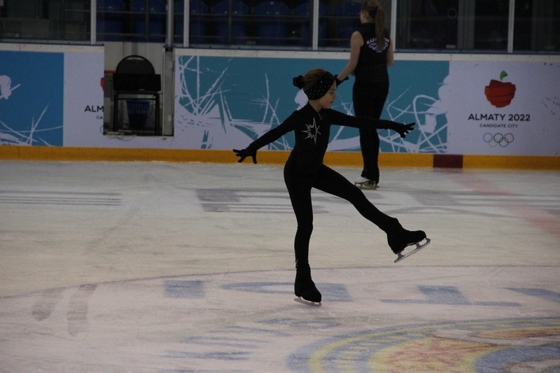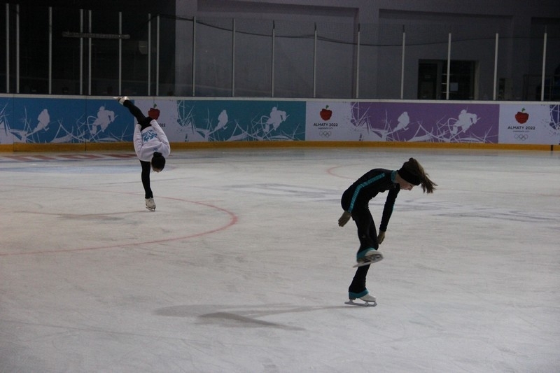 На территории Дворца наряду с центральной ареной имеется и раскаточный каток, который сейчас является базой хоккейного клуба «Алматы» и, как мы наглядно убедились, там сегодня тренируются юные фигуристы.