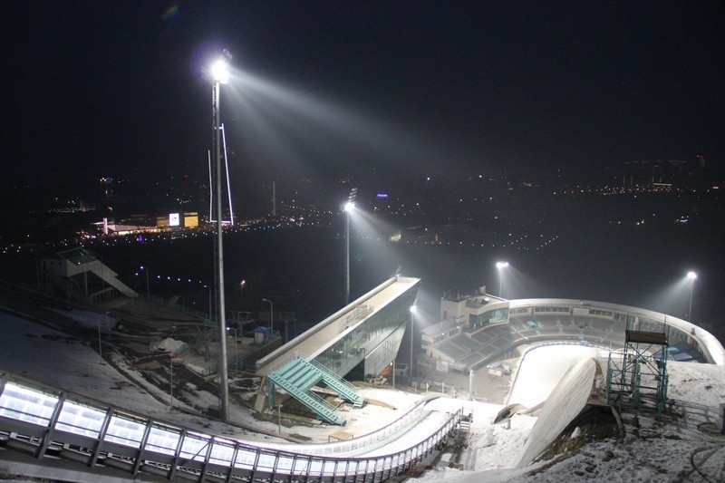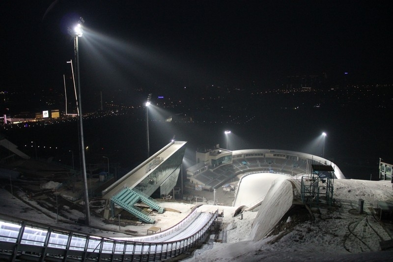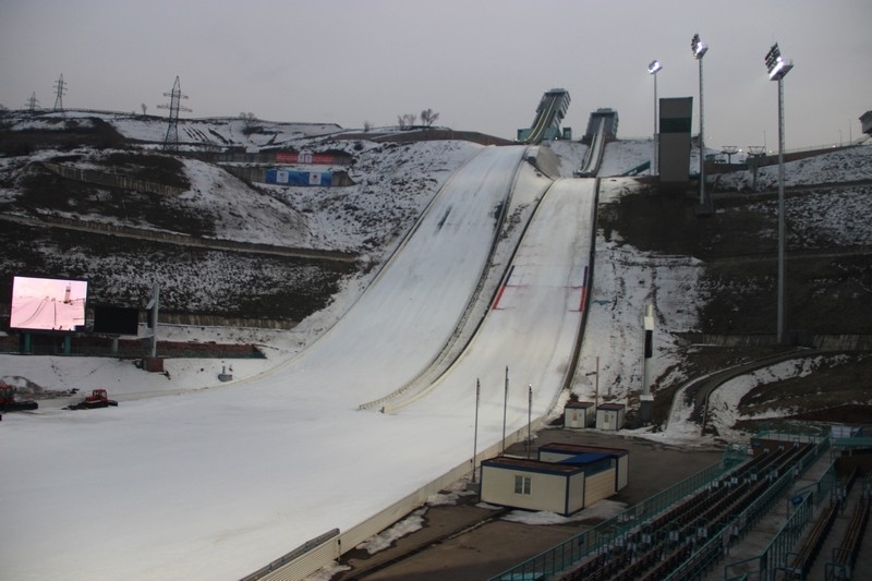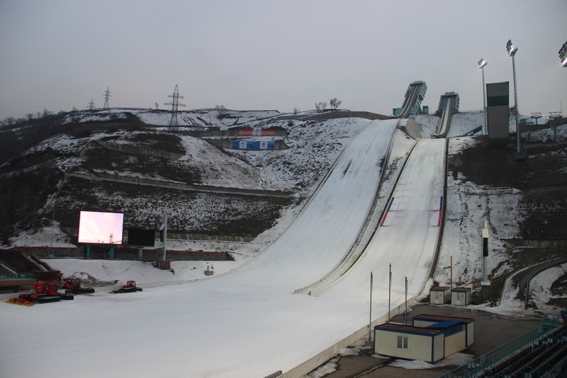 Международный комплекс лыжных трамплинов был построен в 2010 году, и это и есть наследие Зимней Азиады четырехлетней давности. За это время на этом комплексе прошел ни один крупный турнир, и видеть, как лучшие летающие лыжники планеты выявляют сильнейшего в Алматы в прямом эфире телеканала «EUROSPORT», мы уже, кажется, привыкли. В комплексе наряду с пятью трамплинами — трибуны на пять тысяч мест, судейская вышка, которая используется для судей определяющих дальность прыжков. Трамплин оснащён современной техникой, большими парковочными местами. На территории трамплина дислоцируется детская спортивная школа, где обучается около четырехсот детей, имеющих возможность тренироваться круглый год. Комплекс уникален тем, что входит в число трех в мире, которые находятся в черте города.