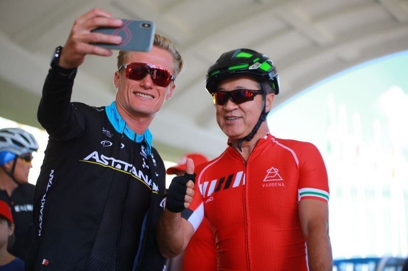 Поддержать благотворительный марафон приехали министр культуры и спорта РК Арыстанбек Мухамедиулы, олимпийский чемпион Александр Винокуров и другие известные спортсмены, бизнесмены, политики и общественные деятели.