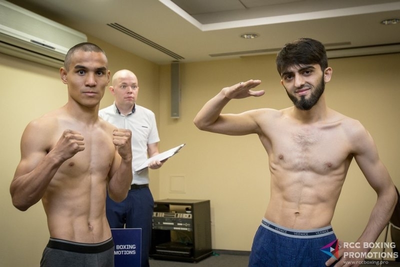 Казахстанские боксеры Мадияр Жанузак и Даулет Даукенов прошли взвешивание перед поединками на «Big Drama Show 2» в России.