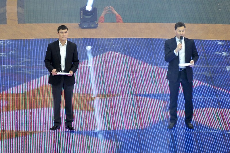 Одним из главных событий программы стало награждение семерых столичных школьников, полностью выполнивших нормативы Президентских тестов, которые проходили в Астане в октябре-ноябре этого года. Награды им вручал олимпийский чемпион-2012 года Серик Сапиев. Кстати, это стало еще одним сюрпризом от организаторов, которые пригласили прославленного мастера кожаной перчатки в качестве ведущего мероприятия. Дебют Сапиева удался — он призывал зрителей вспомнить олимпийские моменты, когда страна болела за своих спортсменов, и трибуны взрывались аплодисментами.