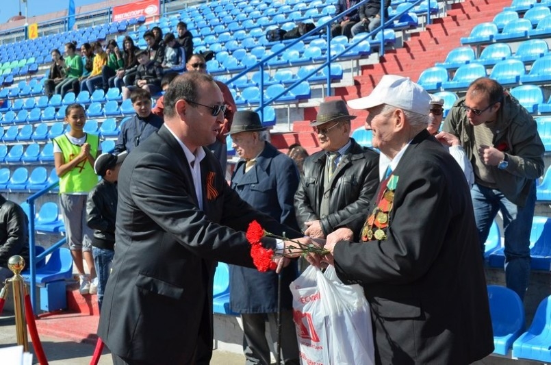 Громкими аплодисментами встретила спортивная общественность своих героев — Скотникова Ивана Васильевича, Комарова Дмитрия Петровича, Данилова Александра Петровича, Жумабаева Батырхана Жумабаевича — ветеранов Великой Отечественной Войны, которые помимо всего прочего многое отдали для развития спорта на целиноградской земле. Им организаторы мероприятия помимо других подарков в честь праздника, вручили музыкальные центры и диски с песнями военных лет. После парада открытия ветераны изъявили желание принять участие в шахматном турнире, который проходил тут же. Надо отметить, что мастерства почетным гостям было не занимать, их шахматные баталии были самыми интересными.