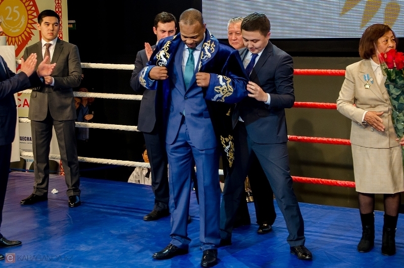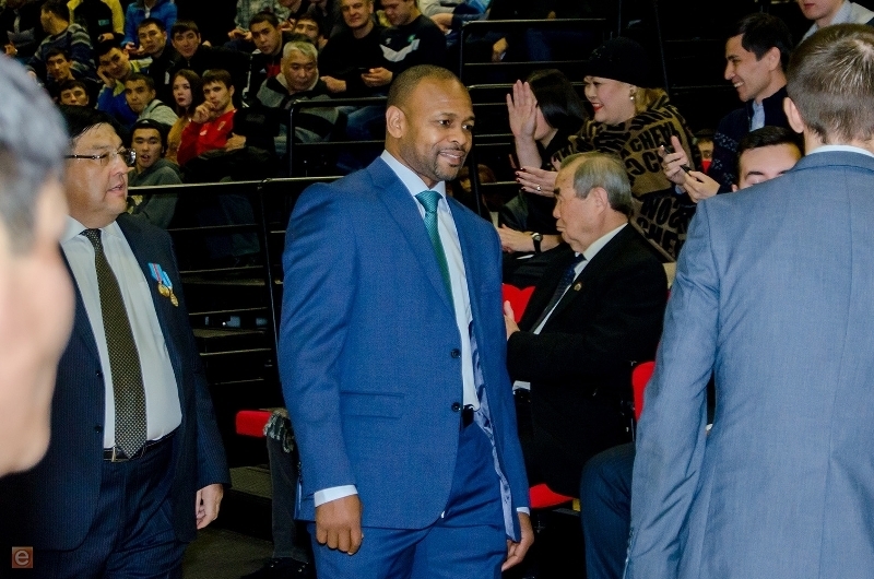 Рой Джонс-младший — американский боксёр-профессионал. Серебряный призёр Олимпийских игр 1988 года. Абсолютный чемпион мира в полутяжёлой весовой категории. Рой Джонс первый в мире чемпион, который смог завоевать награды во всех весовых категориях. Кроме того, боксер известен своей музыкальной и актерской деятельностью. И вчера он снова спел свои лучшие композиции на ринге центра бокса имени Серика Сапиева.
