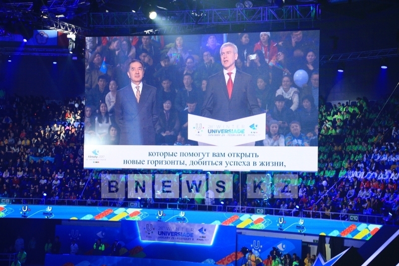 «Уважаемый мэр города Красноярск, уважаемые друзья! Следующая Универсиада-2019 состоится в России, эстафету примет город Красноярск, мы знаем этот город как научный, культурно-образовательный центр и рады приветствовать у себя вашу делегацию. Благодаря Универсиаде мы больше узнали друг о друге, стали лучшими друзьями. Это начало нашего сотрудничества. Мы искренне желаем достойно провести студенческие Игры. Алматы готов передать свой опыт», — пожелал Бауыржан Байбек.