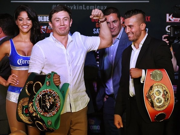 Фото с пресс-конференции боя Головкин — Лемье в Лос-Анджелесе