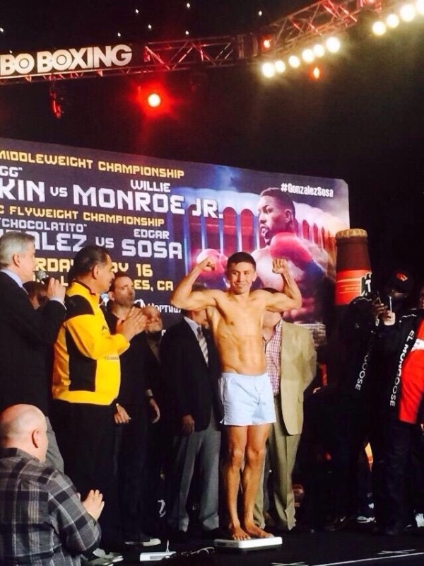 Фото с процедуры взвешивания боя Геннадий Головкин — Вилли Монро