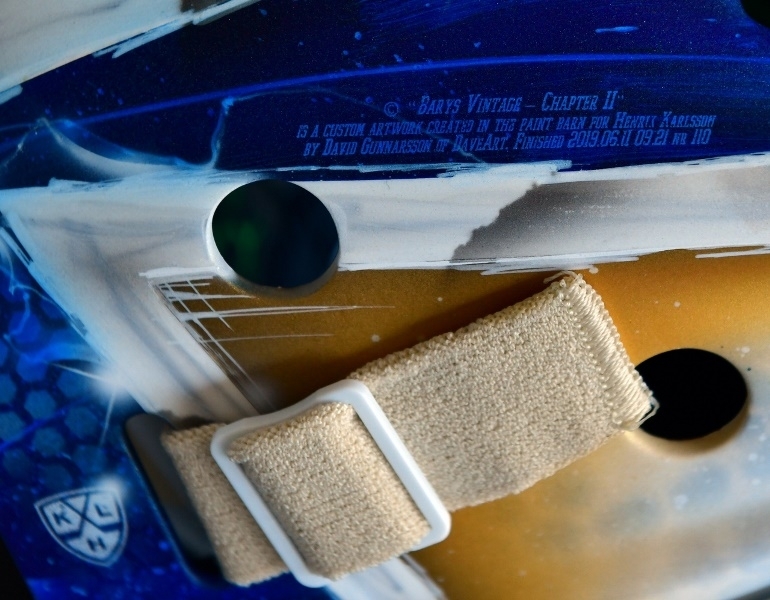 Представляем Вашему вниманию фото шлема голкипера «Барыса» Хенрика Карлссона в новом дизайне.