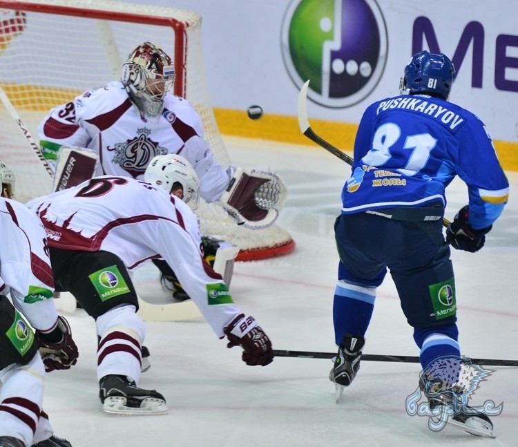 Представляем Вашему вниманию фоторепортаж с матча КХЛ «Барыс» — «Динамо» Рига — 4:5 Б.