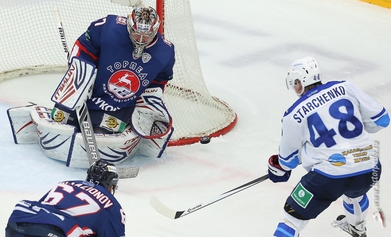Представляем Вашему вниманию фоторепортаж с матча КХЛ «Торпедо» — «Барыс» — 2:1.