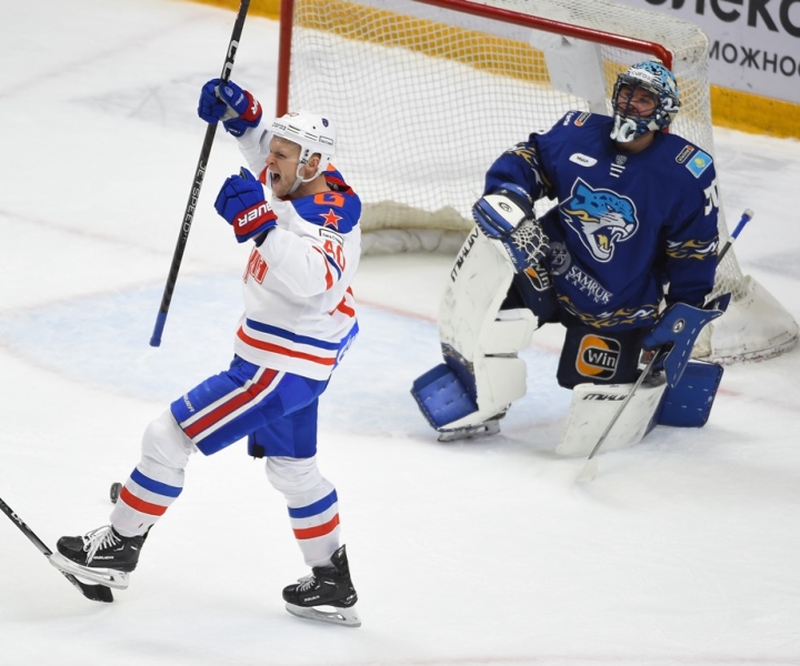 Фоторепортаж с матча Континентальной хоккейной лиги «Барыс» — СКА 4:6