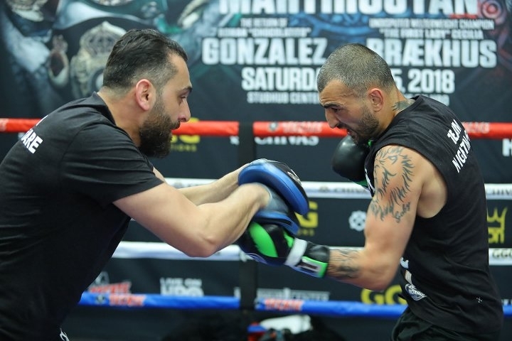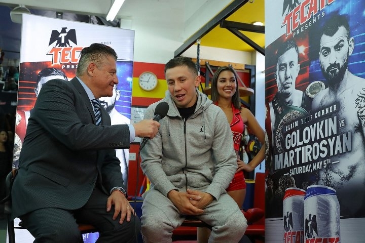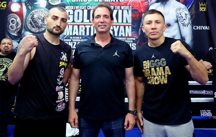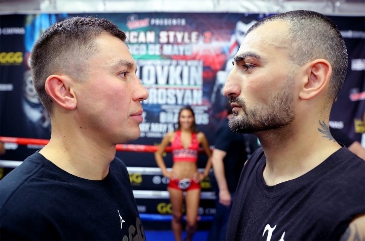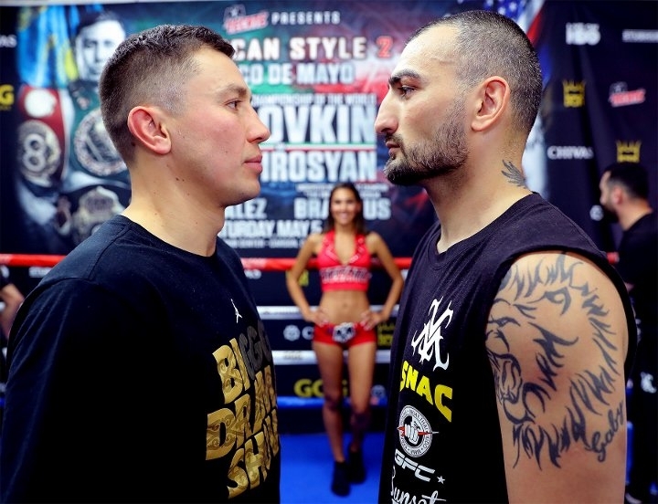 Фоторепортаж с открытой тренировки и дуэли взглядов Головкина и Мартиросяна