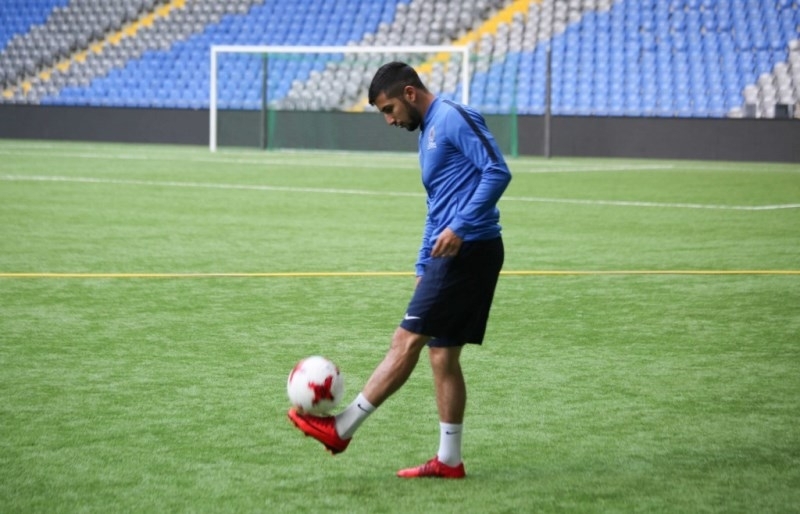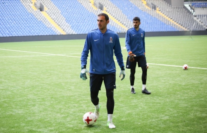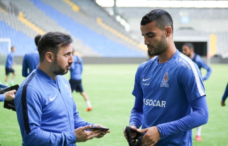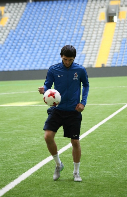 Фоторепортаж с предматчевой тренировки сборной Азербайджана в Астане