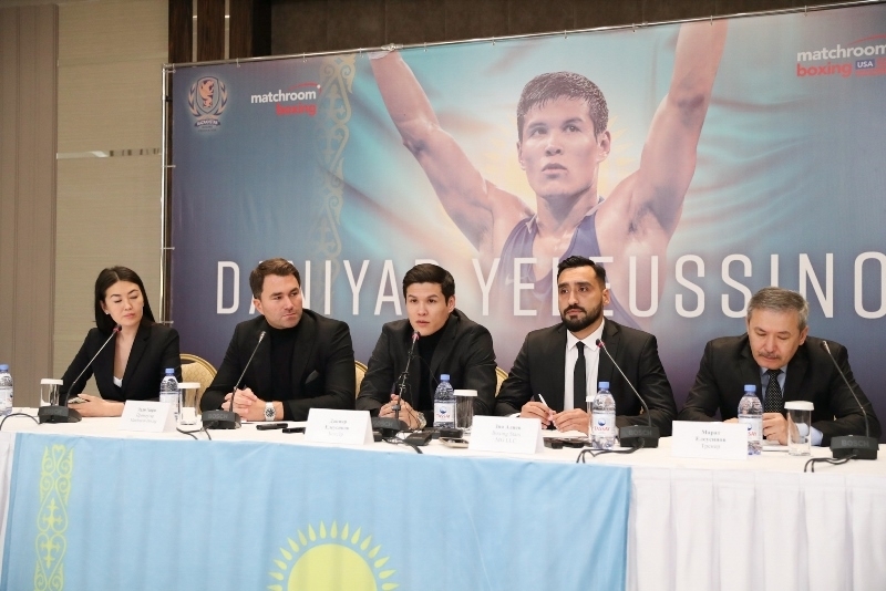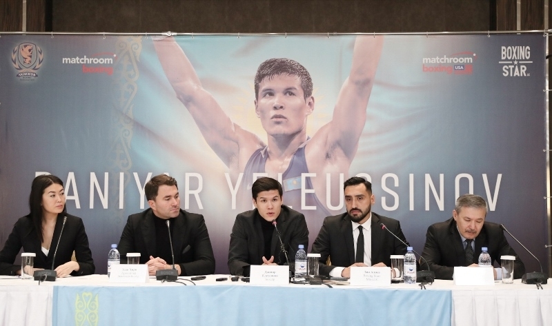 Представляем Вашему вниманию фоторепортаж с пресс-конференции с участием Данияра Елеусинова и промоутера Эдди Хирна, на которой казахстанец объявил о переходе в профессиональный бокс.