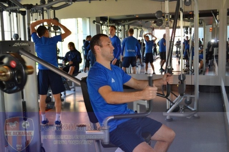 Представляем Вашему вниманию фоторепортаж с тренировки «Акжайыка» в тренажерном зале на учебно-тренировочных сборах в Турции.