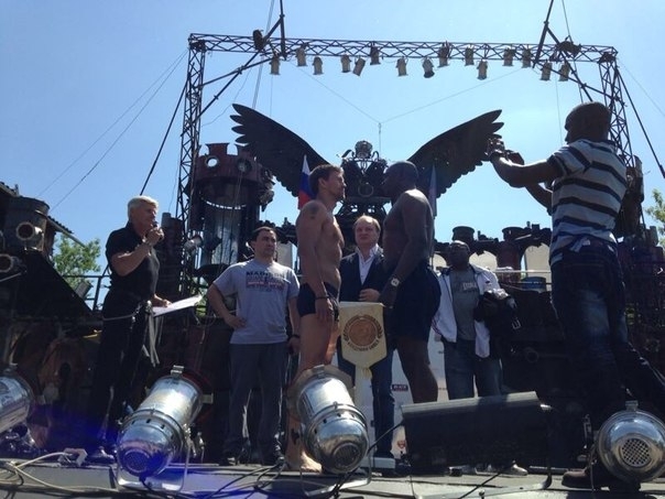 Представляем Вашему вниманию фоторепортаж с церемонии взвешивания боя Акбербаев — Окола, опубликованный на странице Исы Акбербаева ВКонтакте.