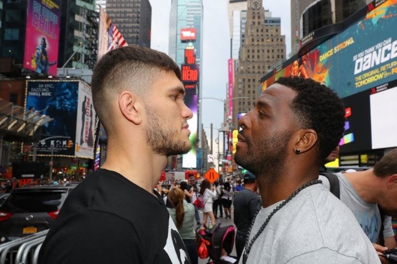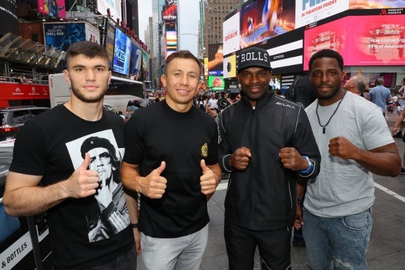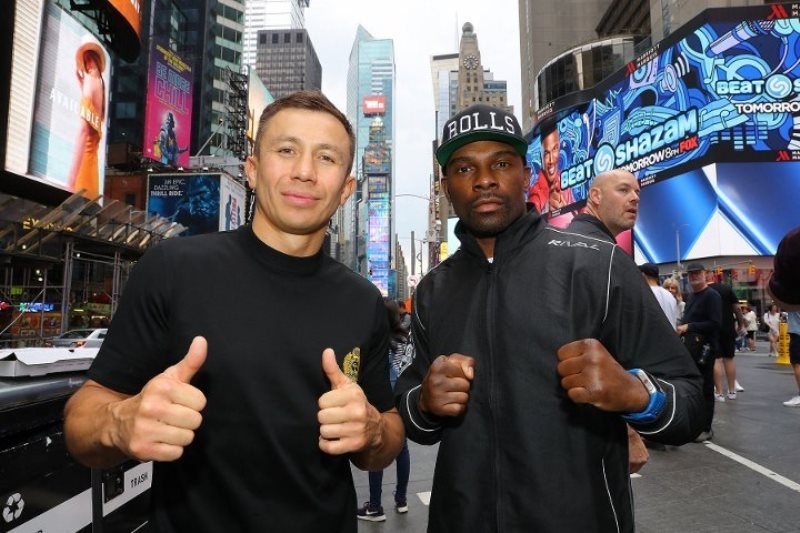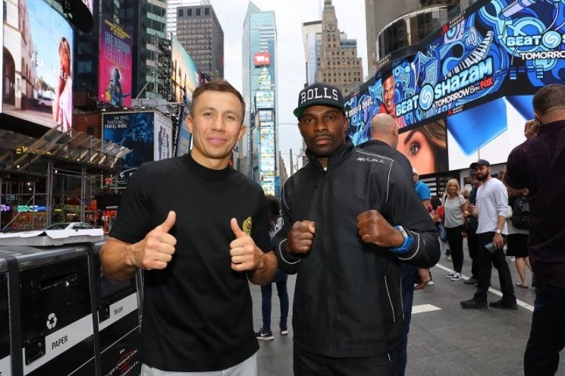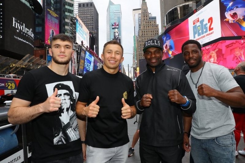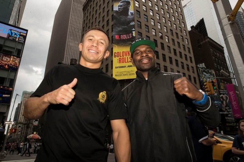 Фоторепортаж с «уличной» дуэли взглядов Головкина и Роллса перед боем в Нью-Йорке