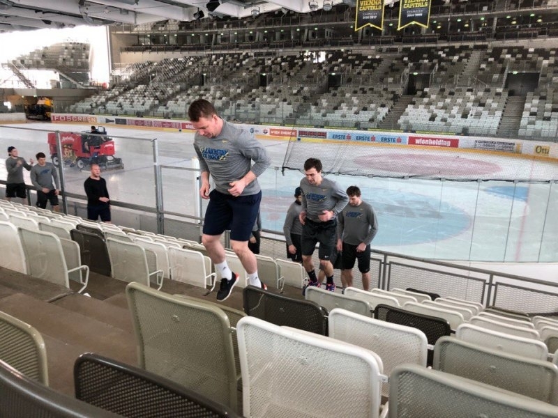 Представляем Вашему вниманию фоторепортаж с заключительной тренировки сборной Казахстана в Вене перед выездом в Будапешт.