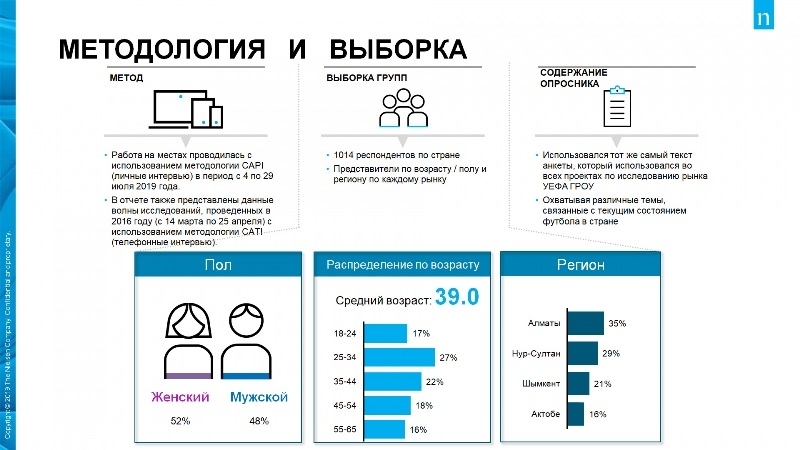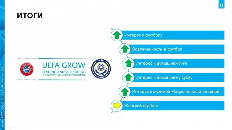 Ева Паскье рассказала о текущем состоянии футбола в стране на основе анализа, который провела УЕФА в рамках программы УЕФА GROW при помощи известной исследовательской компании Nielsen. Согласно докладу, по всему Казахстану было опрошено 1014 респондентов разного пола и возрастных групп. Паскье отметила, что, начиная с 2016 года, интерес к футболу среди населения вырос с 22 процентов до 48 процентов. Тем самым футбол по популярности в два раза превышает бокс и почти в пять раз — хоккей и смешанные боевые единоборства (ММА).