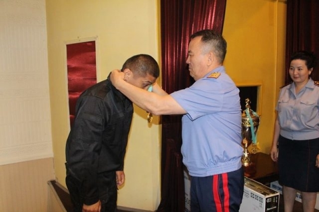 Начальник ДВД Южно-Казахстанской области генерал-майор полиции Аскар Оспанов поздравил победителей турнира по казакша курес среди сотрудников полиции.