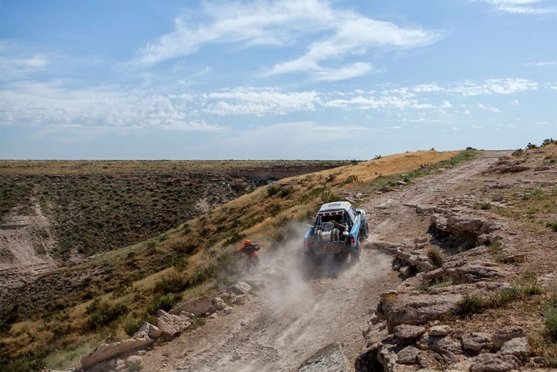 — Самый яркий образ ралли-рейда, который воплощен в нашей волшебной родной земле. Фантастическое разнообразие дорожек, пейзажей. Такая палитра красок из трав, запахов. Все было здорово. Очень часто меняющиеся дорожки — от быстрых к рулежным, от рулежных к прыгучим. Были труднораспознаваемые участки, где ехали почти на максимальной скорости в траве по еле видной дороге. Дух захватывает! И немножко становится страшно, потому что практически ничего не видно, — описывает свои ощущения от прохождения участка пилот команды Kazakhstan Андрей Чередников.