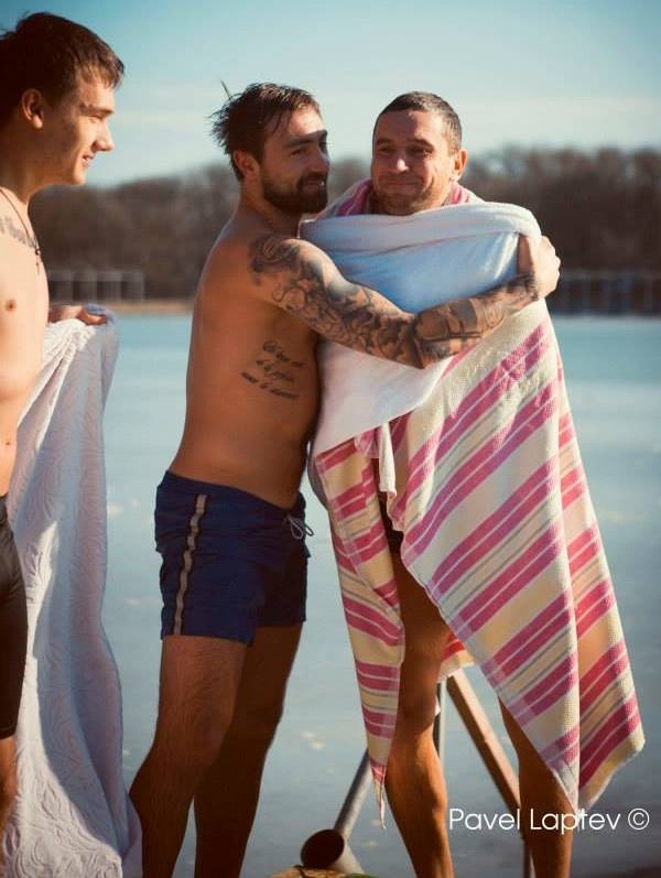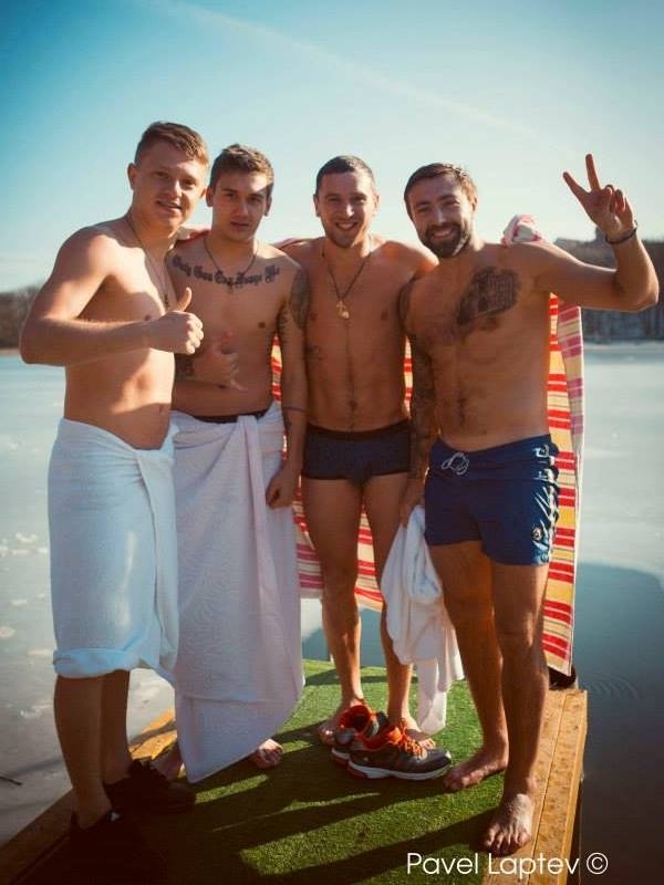 Футболисты «Актобе» Валерий Коробкин, Алексей Антонов, Павел Шабалин, Евгений Левин и Дмитрий Мирошниченко искупались по случаю православного праздника Крещение.