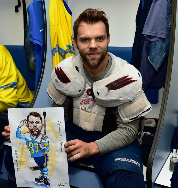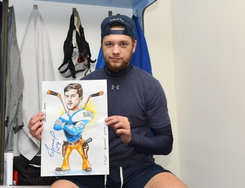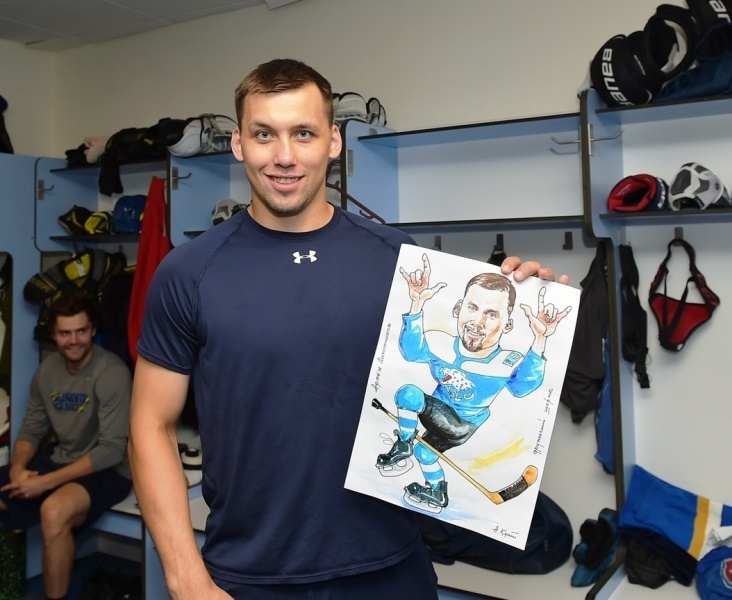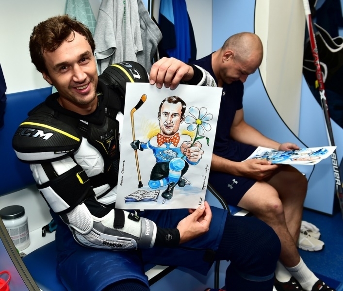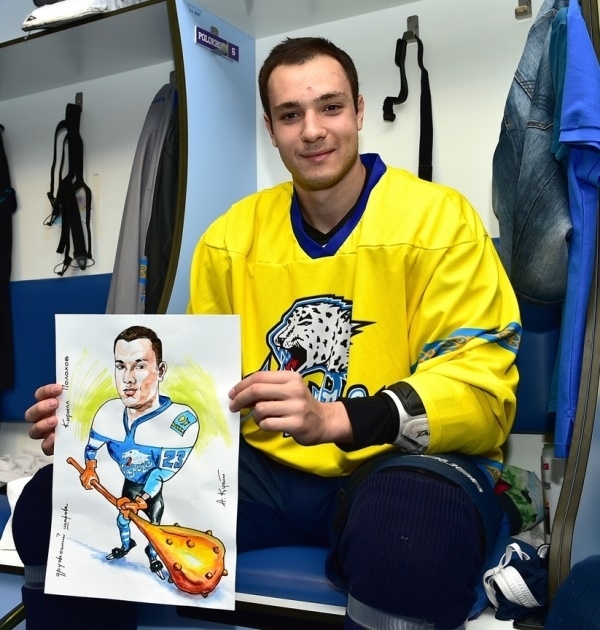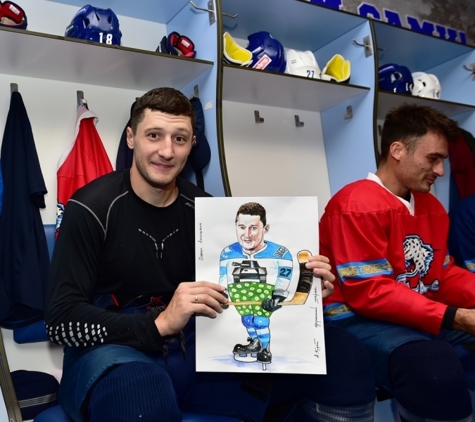 Представляем Вашему вниманию фото и видео игроков астанинского «Барыса», получивших шаржи, которые нарисовал талантливый художник Куат Аскаров.
