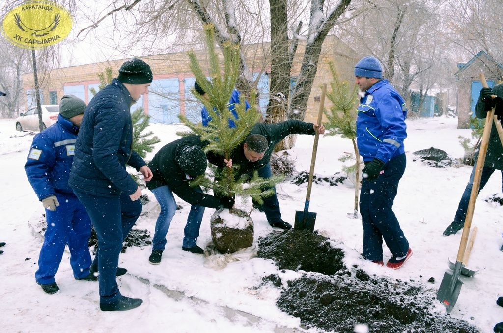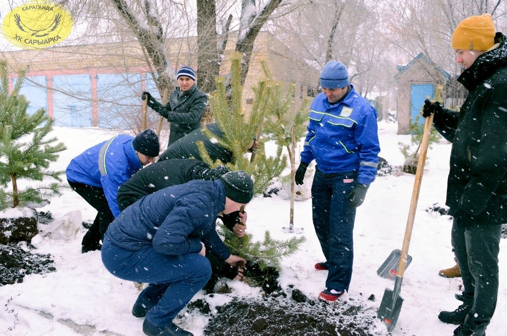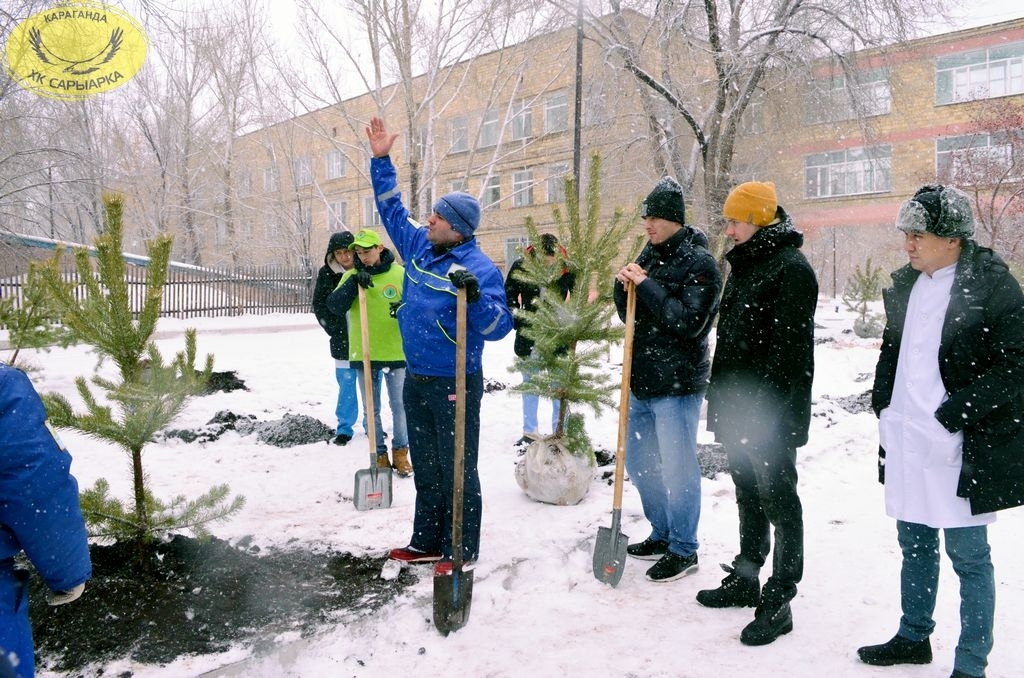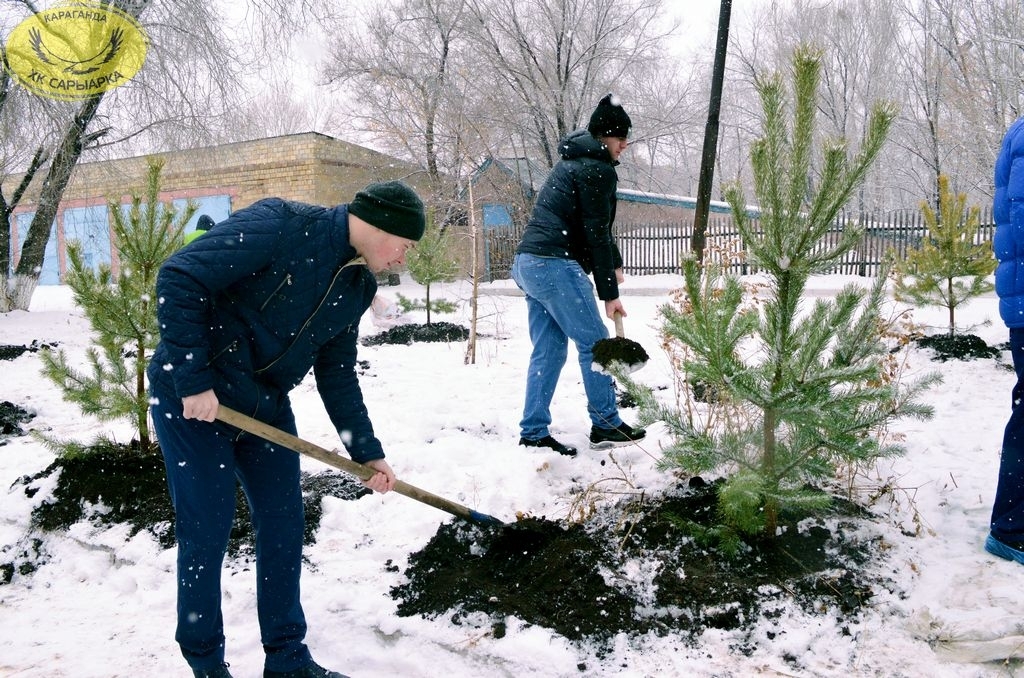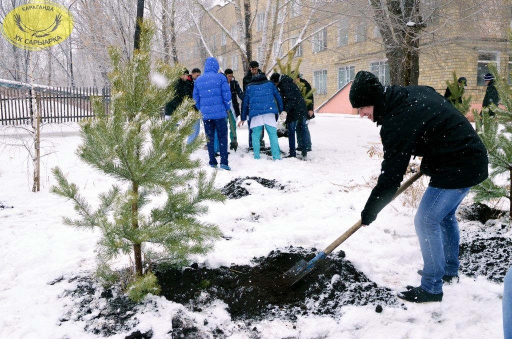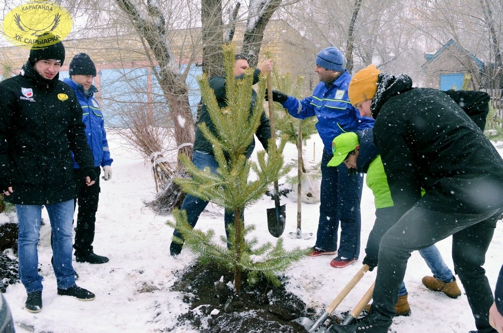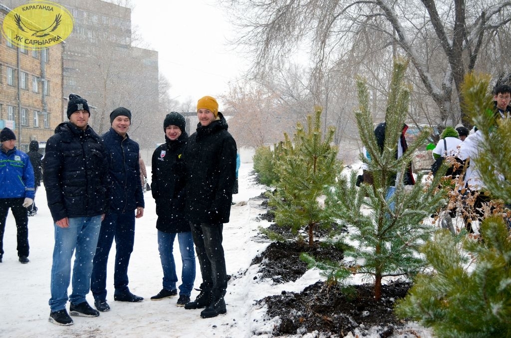 Хоккеисты хоккейного клуба «Сарыарка» и команды «Темиртау» совместно с партией «Нур Отан» и ее молодежного крыла «Жас Отан» приняли участие в акции по высадке елей на территории областной детской больнице.
