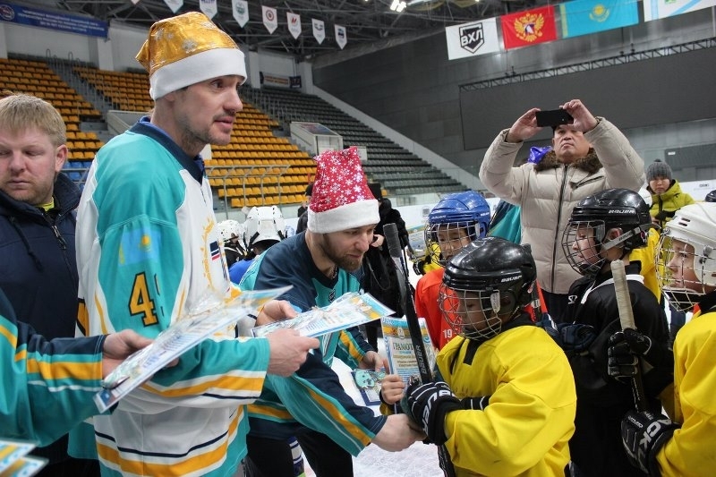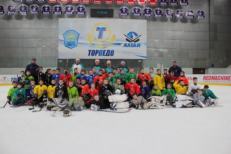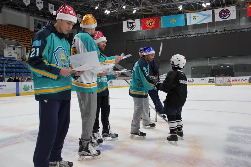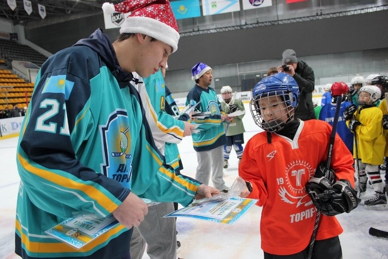 Хоккеисты усть-каменогорского «Торпедо» Евгений Рымарев, Александр Шин, Досжан Есиркенов и Адильбек Джангазинов пришли на тренировку «Торпедо-2009» и поздравили детей с Новым годом!