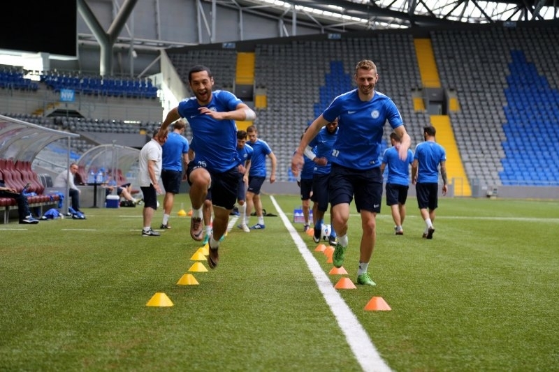 Футболисты павлодарского «Иртыша» накануне матча 1/4 финала Кубка Казахстана провели предыгровую тренировку на «Астана Арена».