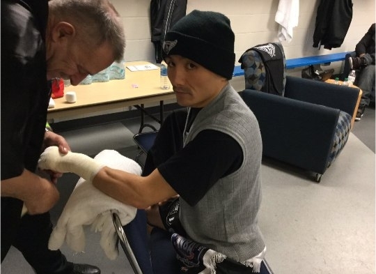 Жакиянов готовится к выходу на ринг с Уорреном