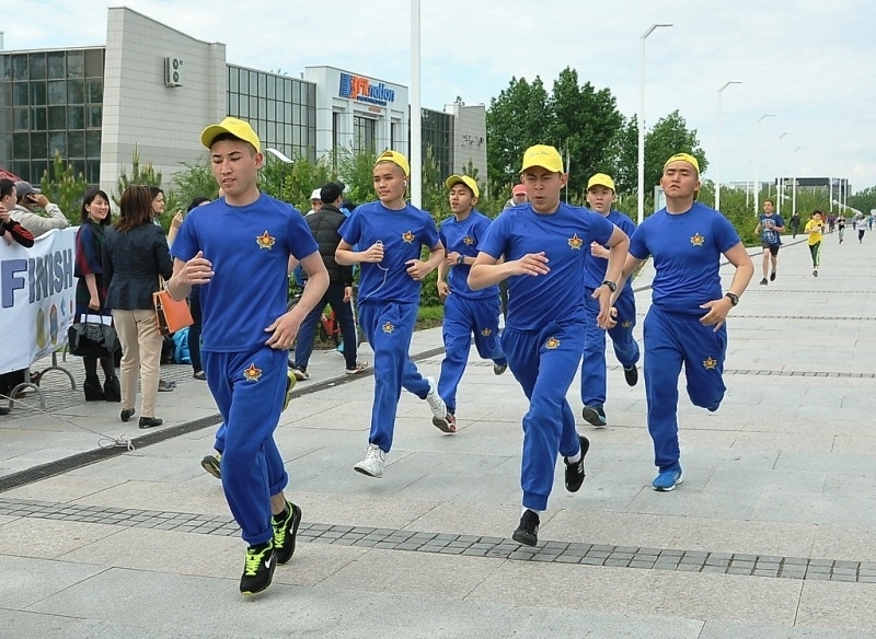 Вместе с активными астанчанами 150 военнослужащих Центрального аппарата Министерства обороны РК и воспитанники Республиканской школы «Жас улан» приняли участие в легкоатлетическом забеге.