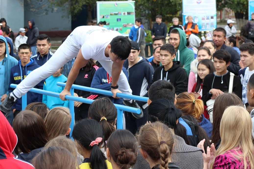 В программе праздника были показательные выступления карагандинских спортсменов, группы streetworkoutер’ов «Bar Bars», Аэрофит, презентация спортивных школ Управления физической культуры и спорта. Во время презентации родители и школьники смогли узнать о видах спорта, преподаваемых в этих школах, и записаться в спортивные секции.