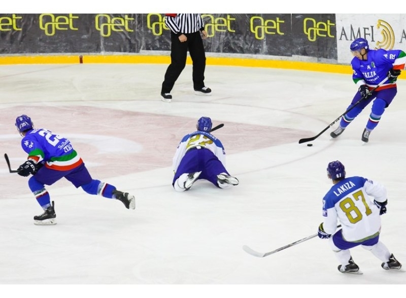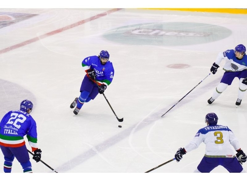 В первых двух периодах команды обменивались шайбами, сначала на точный бросок Джулио Сканделло ответил Максим Худяков, а затем Брэндон Боченски вывел казахстанцев вперед, однако Томмазо Траверса уровнял шансы на успех. В заключительной двадцатиминутке итог подвел Роман Старченко.