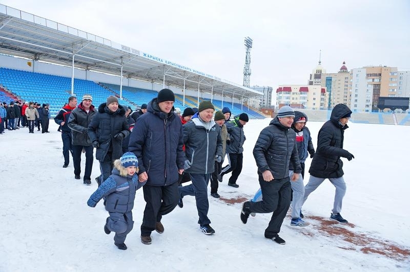 Празднование государственного праздника началось со спортивного мероприятия — на столичном стадионе стражи Государственной границы преодолели 3 километра.