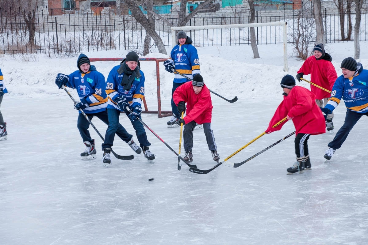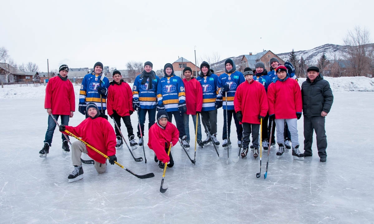 Хоккеисты «Казцинк-Торпедо» cыграли на открытом льду с воспитанниками школы-интерната