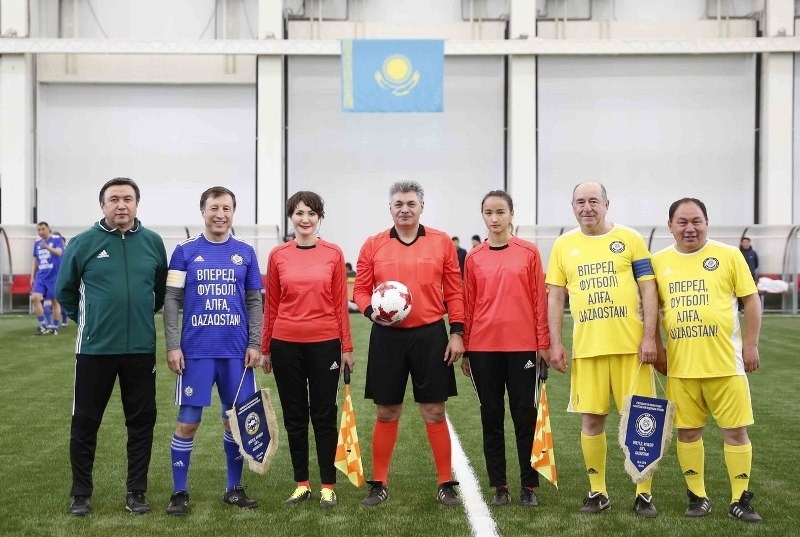 Участники Очередной XVII Конференции Казахстанской Федерации футбола после завершения мероприятия приняли участие в товарищеской игре, которая прошла на футбольном поле манежа Дома футбола.