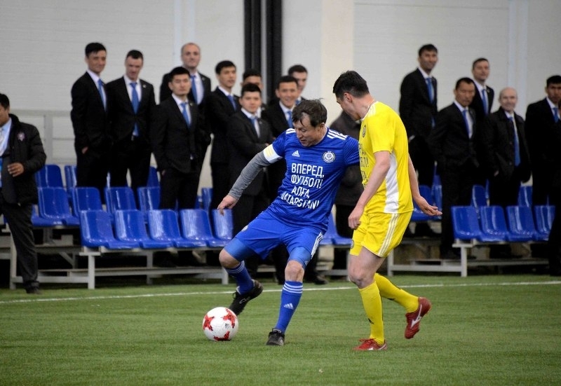 В Астане на новом поле манежа Дома футбола состоялся товарищеский матч между командами Казахстанской Федерации футбола и Профессиональной футбольной лиги Казахстана.