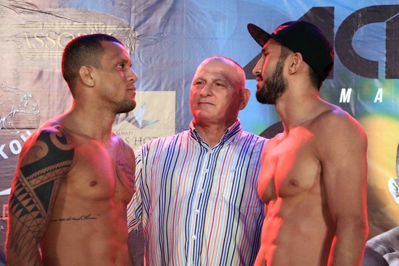 Два главных файтера Арман Оспанов и Тьяго Луис Силва, а также другие участники предстоящего боя прошли процедуру взвешивания и дуэль взглядов.