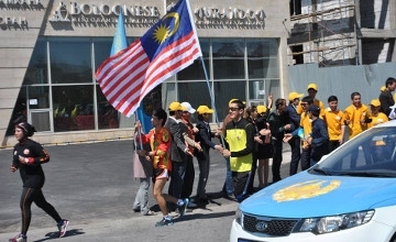 К слову, Сууайба бежит не одна. Ее сопровождают 12 человек: тренер, повар, врач, психолог, телевизионщики Малайзии и люди, которые обеспечивают безопасное прохождение маршрута через границы 11 стран. Бегунья побывала в Китае, в Казахстане, дальше отправится в Узбекистан, Туркменистан, Иран, Турцию, Болгарию, Сербию, Хорватию, Словению и Италию. По шымкентским дорогам она пробежала 10 км и теперь отправилась в Узбекистан. Протяженность всего маршрута составляет 3333 км.