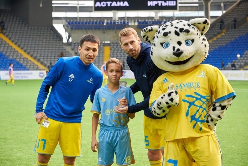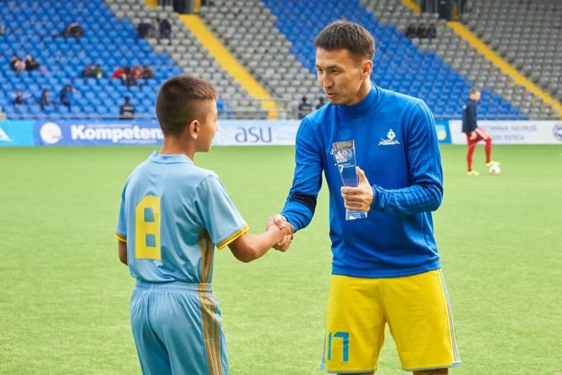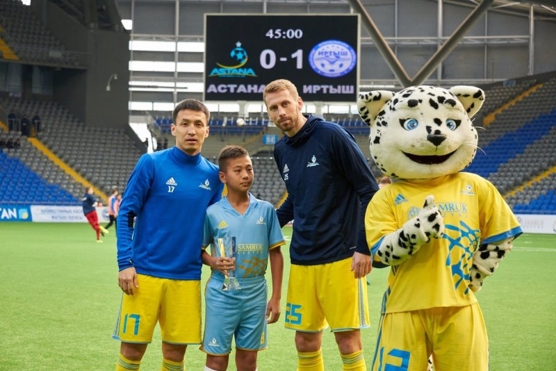 В перерыве матча «Астана» — «Иртыш» юношей наградили футболисты сборной Казахстана и столичного клуба Сергей Малый и Асхат Тагыберген.
