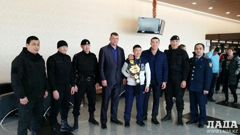 Победителя лицензионного олимпийского турнира АРБ Берика Абдрахманова торжественно встретили в актауском аэропорту.