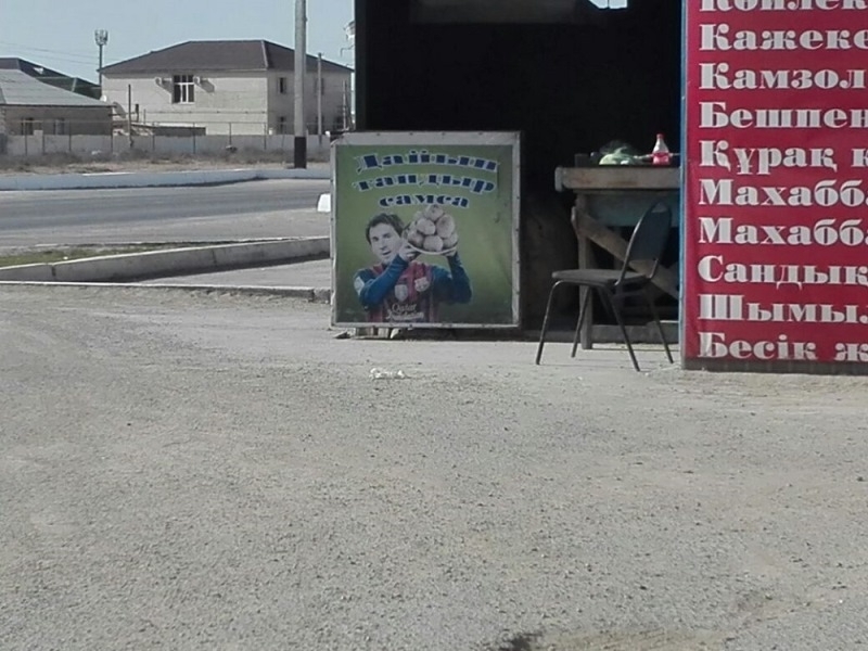 Интернет-пользователей позабавила реклама одной из столовых в Мангистау, у входа которой размещена реклама с Месси, призывающего прохожих отведать готовую тандырную самсу. На необычную афишу продукта обратил внимание местный житель Канат Дарын, который поделился в сетях фотографией.