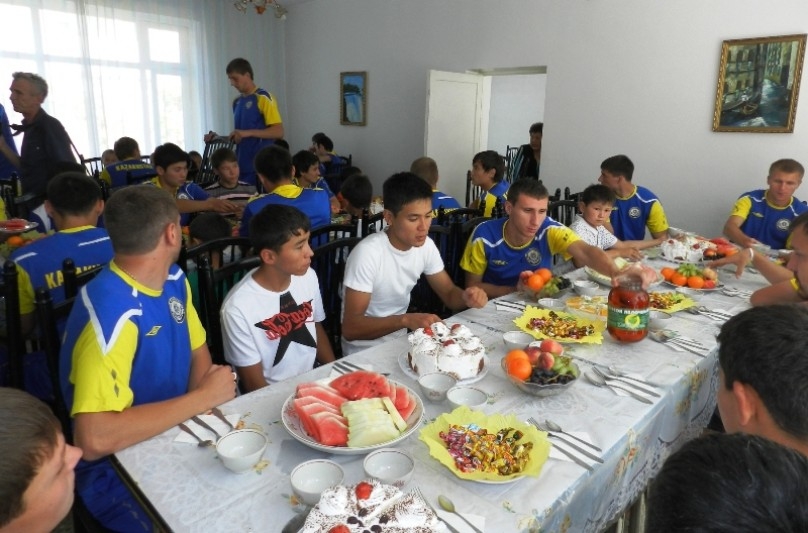 Сборная приехала в детский дом с подарками — в торжественной обстановке директор Департамента сборных команд ФФК Владимир Нидергаус вручил госпоже Ескожиной подарочный сертификат на сумму 773 тысячи тенге, а футболисты Кайрат Нурдаулетов и Сергей Остапенко преподнесли детям сетку с мячами и комплекты игровой формы.