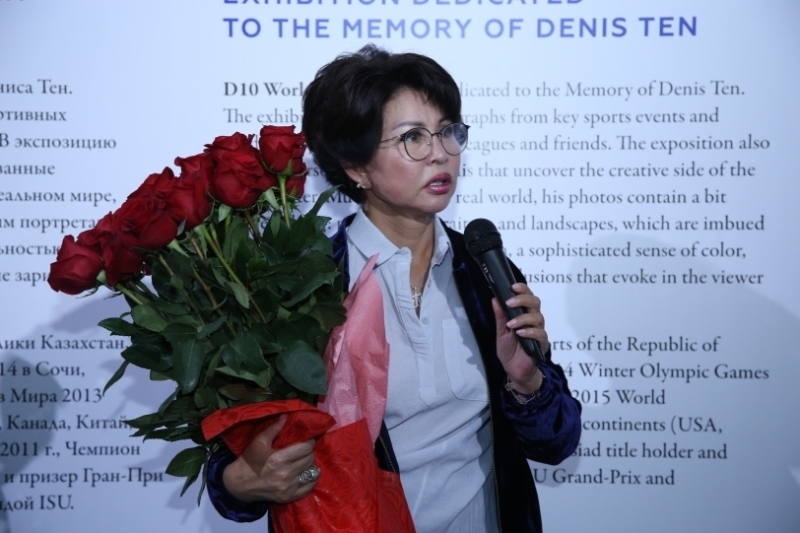 «Эта выставка была инициирована фондом Дениса Тена, друзьями и близкими. Когда мы думали над идеей и концепцией этой выставки, мы думали, как бы Денис хотел, чтобы она выглядела. Мы хотели сделать ее красиво, новаторски, стильно, чтобы она отражала его личность. Мы не могли пропустить мимо его спортивные достижения. Это фотографии, которые отображены в зоне синего цвета, так как это цвет силы, энергии. Здесь же представлены фотоработы самого Дениса», — сказала Гаухар Омар.